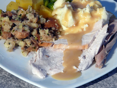 I assume the turkey was roasted according to the method in Barbara Kafka's book. I may need to borrow a copy before Thanksgiving here. last year I took over the Thanksgiving prep, on the road at my dad's. We bring a local turkey from here with us.I hope you had a wonderful holiday. It looks like you did.-Robin