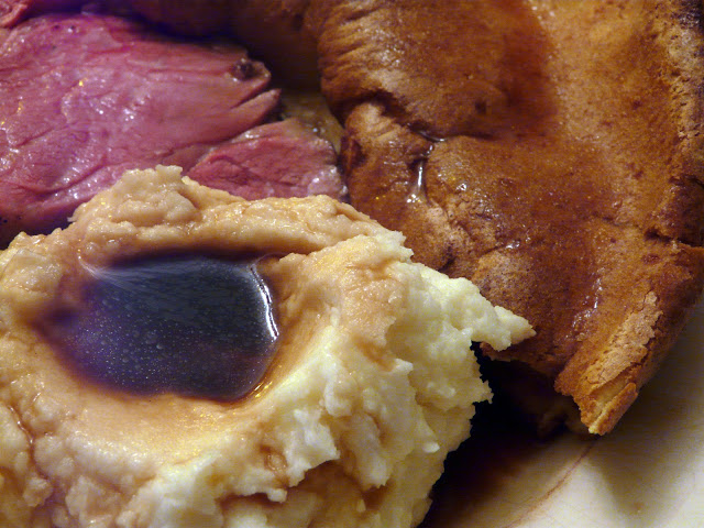 The roast was covered loosely with foil and left to rest while the Yorkshire finished baking.