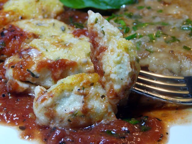 Monday nights dinner – Ricotta Gnocchi in a marinara sauce served with chicken picatta on the side. Moe was still talking about the gnocchi this morning so this recipe is going into the “make often” file. I found the recipe on Not Quite Nigella’s Blog.