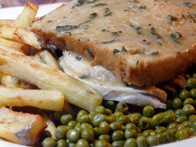 Dinner tonight was pure Diner Food. Hot Chicken Sandwiches with homemade fries. This is a favourite meal and one I can put together quickly when I get home from work. The chicken was roasted at 500°F and the potatoes fried after the chicken comes out of the oven. Gives the chicken time to rest.