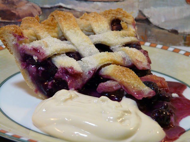 Followed by blueberry pie with a little sour cream sweetened with brown sugar.