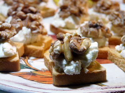We had neighbours/friends over for dinner tonight. Started with an appetizer of warm goat cheese topped with a toasted walnut and drizzled with EVOO.