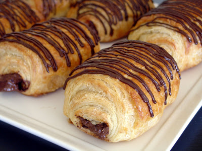 Roll out dough following the same directions as the croissants only instead of cutting the dough into triangles, make straight cuts. I cut into 5 strips.