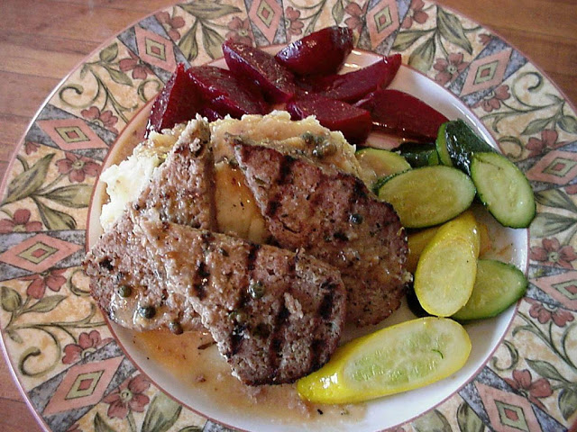 Or my version of Magnolia’s Meatloaf. Magnolia’s was (maybe still is) a restaurant in Charleston, SC. We were on vacation (about 15 years ago) and we had lunch at this restaurant. I’ve never been a fan of meatloaf because most of them seem to contain tomato sauce or ketchup. But Magnolia’s was different. They had a wonderful veal meatloaf that was seasoned with sage, grilled and served with gravy.