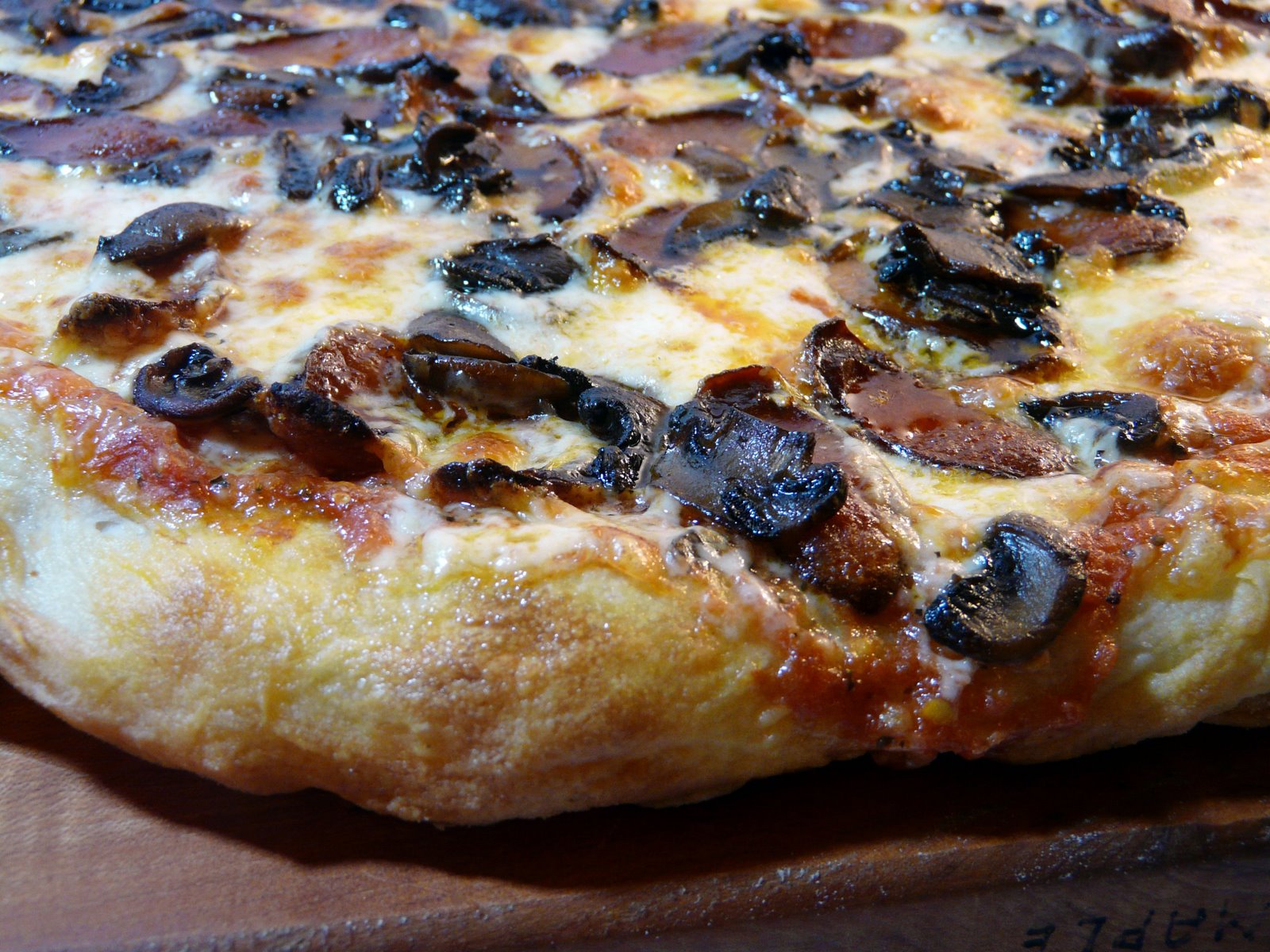 I followed Canadave’s instructions provided on The Pizza Making website, on how to stretch the crust, and his instructions on letting the dough rise for more than 24 hours. I used my regular Italian dough which is very similar to his recipe.