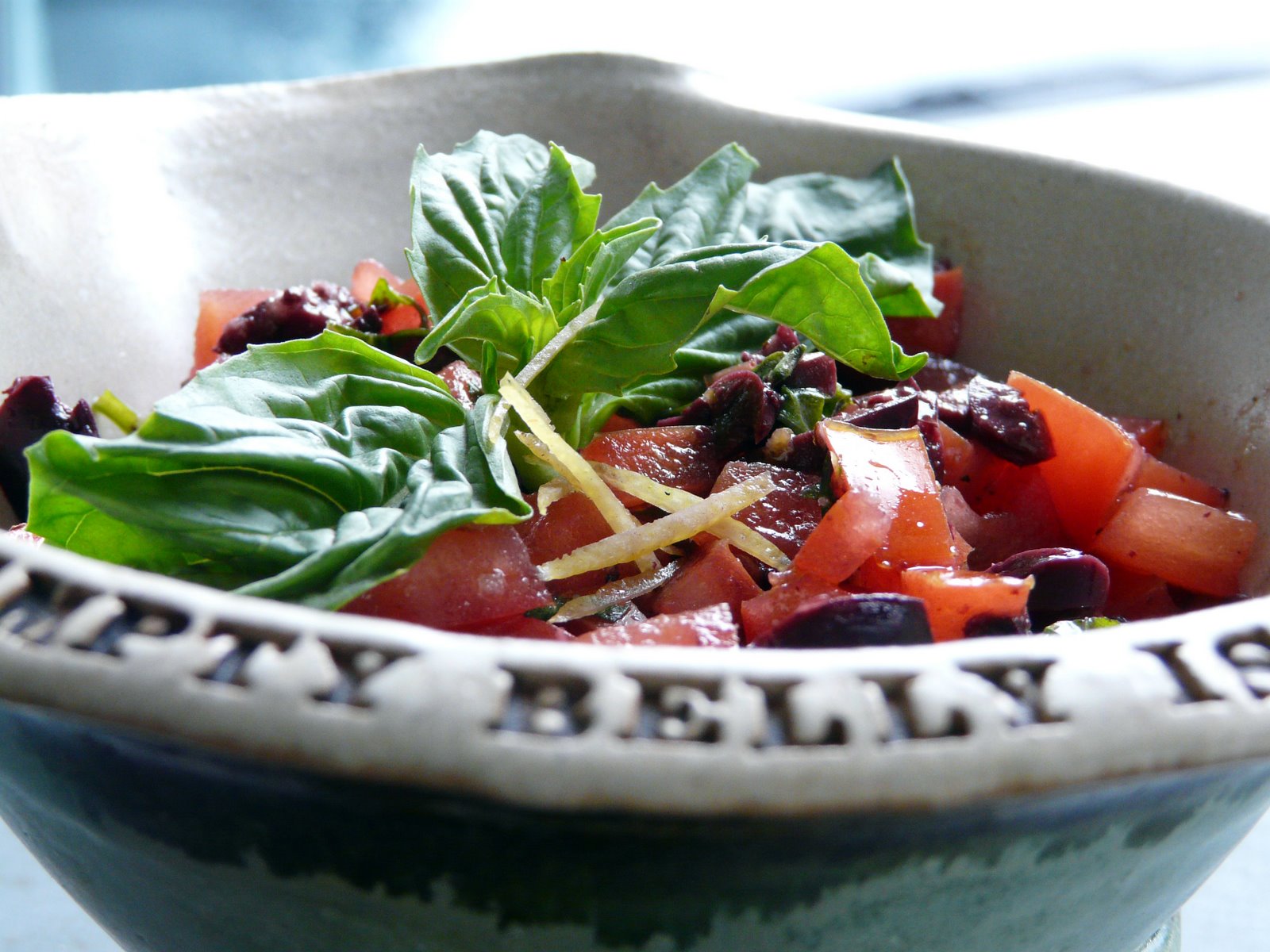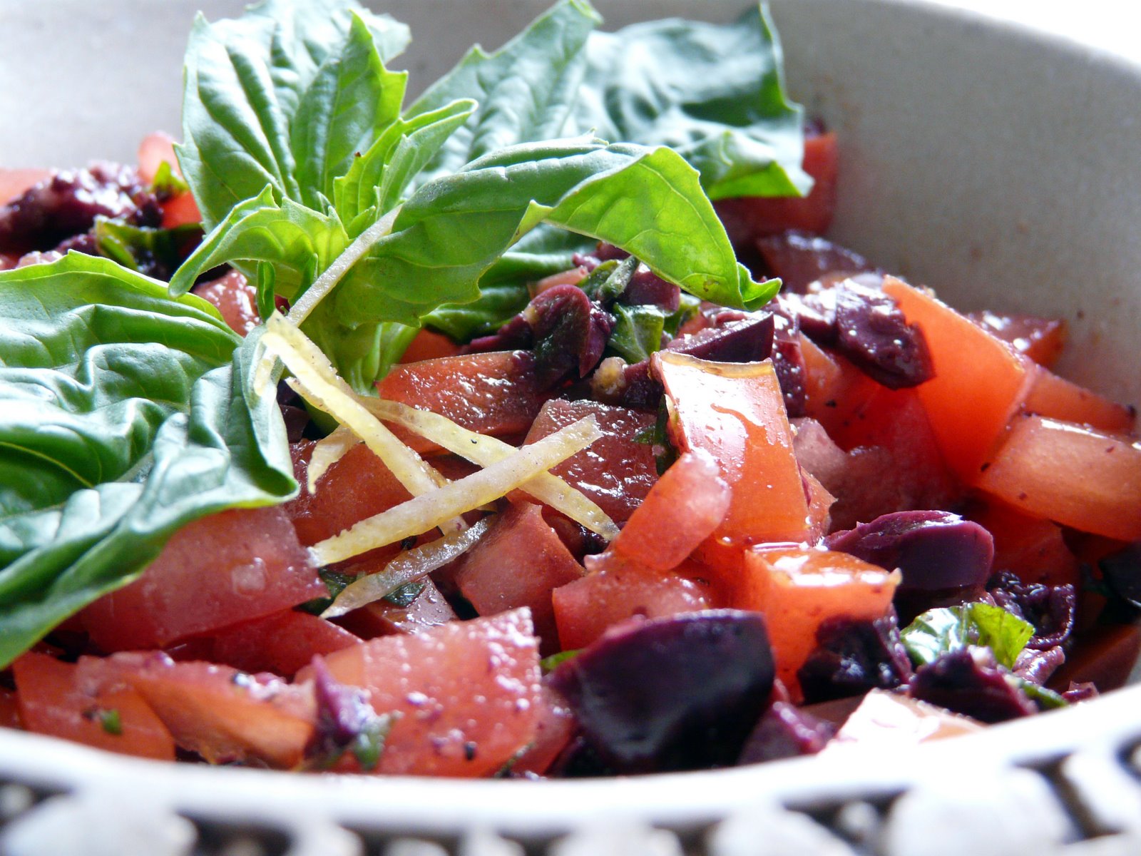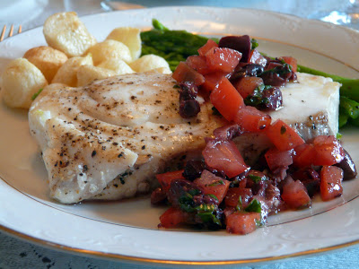 I made a Black Olive, Tomato, garlic, Lemon zest and Basil salsa to serve with the halibut.