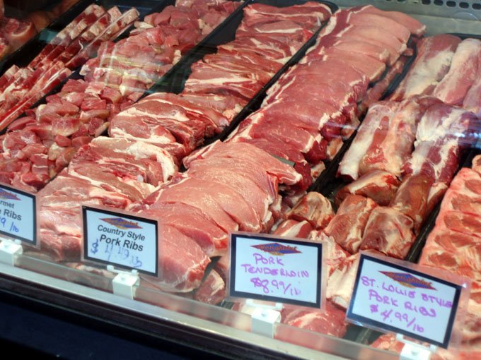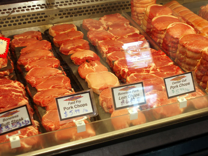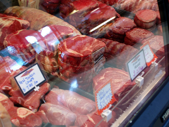 Monday, on my way back from getting physio on my neck (I put it out on Saturday) I stopped at my favourite butcher, the Cowichan Valley Meat Market. This meat market is unique.It is owned by the Quist family and they have been in the business for a number of generations. They own a farm where they raise not only all the meats that they sell but they also grow their own feed. I took these pictures a couple of years ago when I did a blog on Egullet about the Cowichan Valley.