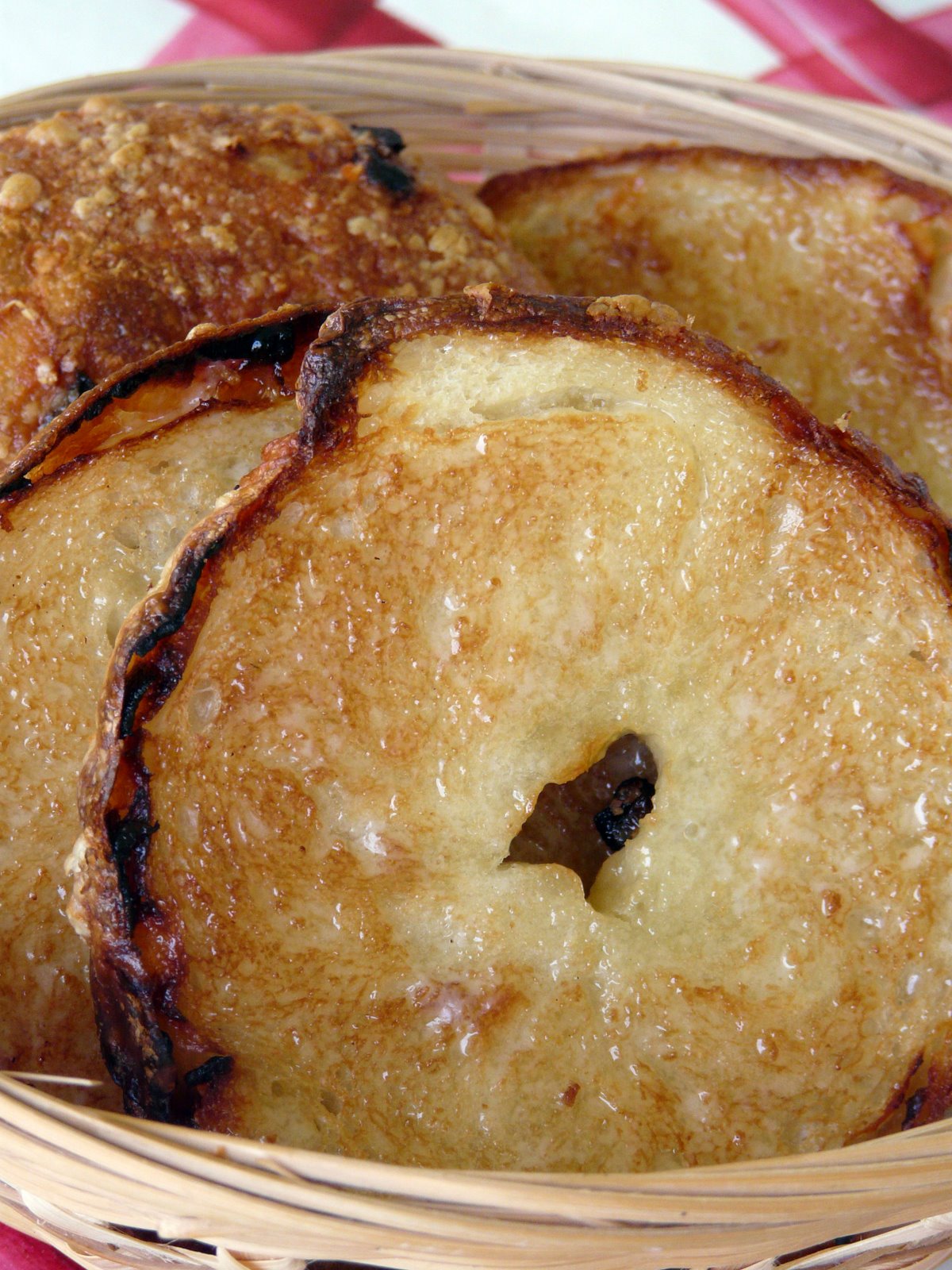 Repeat with remaining 2/3 dough (you may need to punch it down before shaping,) working with 1/3 at a time. Makes 48 cocktail size bagels.