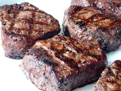 Our neighbour Clif invited us for dinner yesterday, so I didn’t have to do much after I got home from work. He baked potatoes (Moe loves baked potatoes) sauted mushrooms and cooked some corn on the cob and he gave me the beef tendeloin steaks to grill. Clif likes his meat a little bit more done than Moe and I. I put his on the grill a couple of minutes before ours.