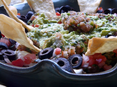 Rather than corn tortilla chips I cut flour tortillas into triangles and deep fried them. I prefer the texture of flour tortilla chips over corn tortilla chips with this dip.
