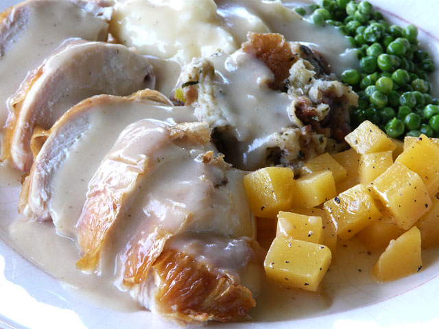 TIP: For a different presentation, remove each breast whole, and cut into five or six pieces and fan the slices on the plate, as shown.