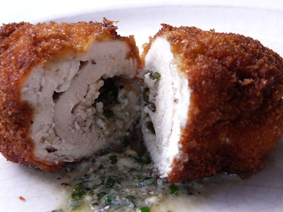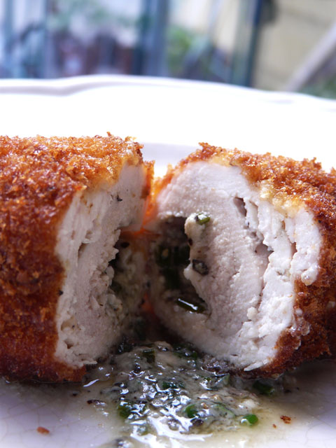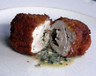 Dinner tonight was Chicken Kiev with a blue cheese and chive butter rather than the more traditional parsley and tarragon butter. It didn’t take very long to prepare. I already had the butter made. It was leftover from the steak dinner we had a few days ago.