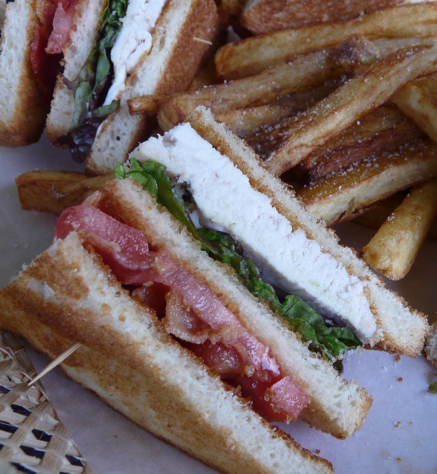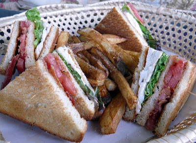 It was over 90°F here yesterday. And no air conditioning either. I’m not complaining. I love hot summer days. But, it was too hot to turn the oven on inside the house. I have a small Waring Convection Oven that I don’t use often, but, it came in handy yesterday. I moved it outside and roasted a chicken. Used my favourite skillet, a vintage Griswold cast iron pan. Perfect size for a small chicken. Dinner was toasted club house sandwiches made using the breast meat and served with homemade fries.