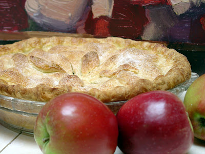 Roll out bottom crust and line pie plate. Add apples, dot with 1 tablespoon of butter and cover with second crust. Decorate with leftover pastry. Make sure to cut a couple of vent holes.