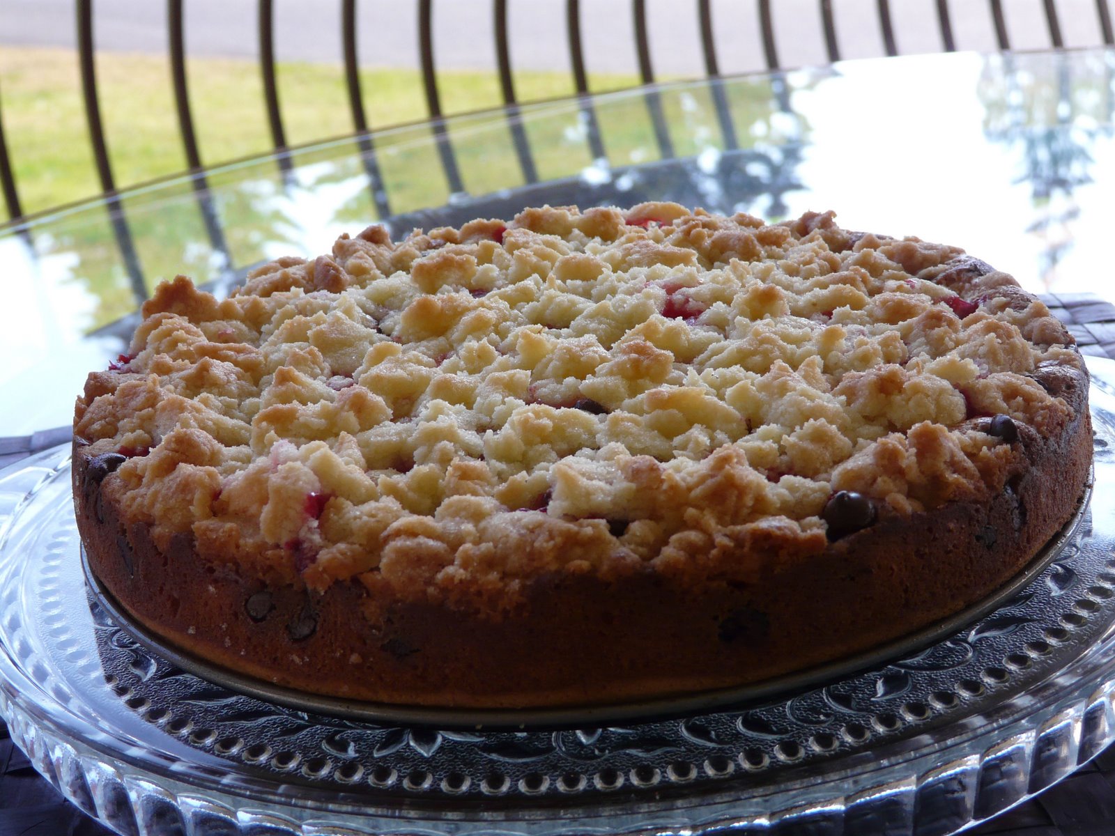 Moe wanted something sweet for breakfast. Rather than make Raspberry scones I decided to bake this cake from Williams Sonoma. I had made this cake once before and thought it needed something so I added a chocolate chips this time. Although there is nothing wrong with this cake, it is lacking something. I have other Coffee Cakes that I like better so I probably won’t make this one again.