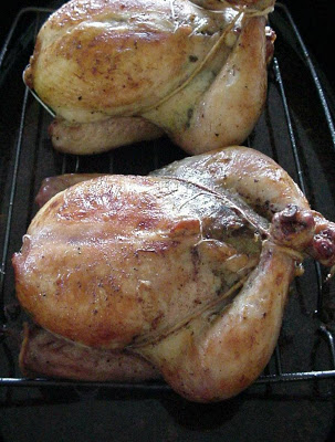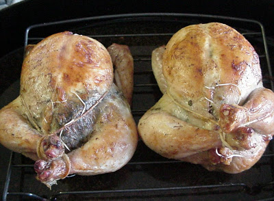 Roast birds in a 375°F until done, about 45 minutes. Remove birds from pan.