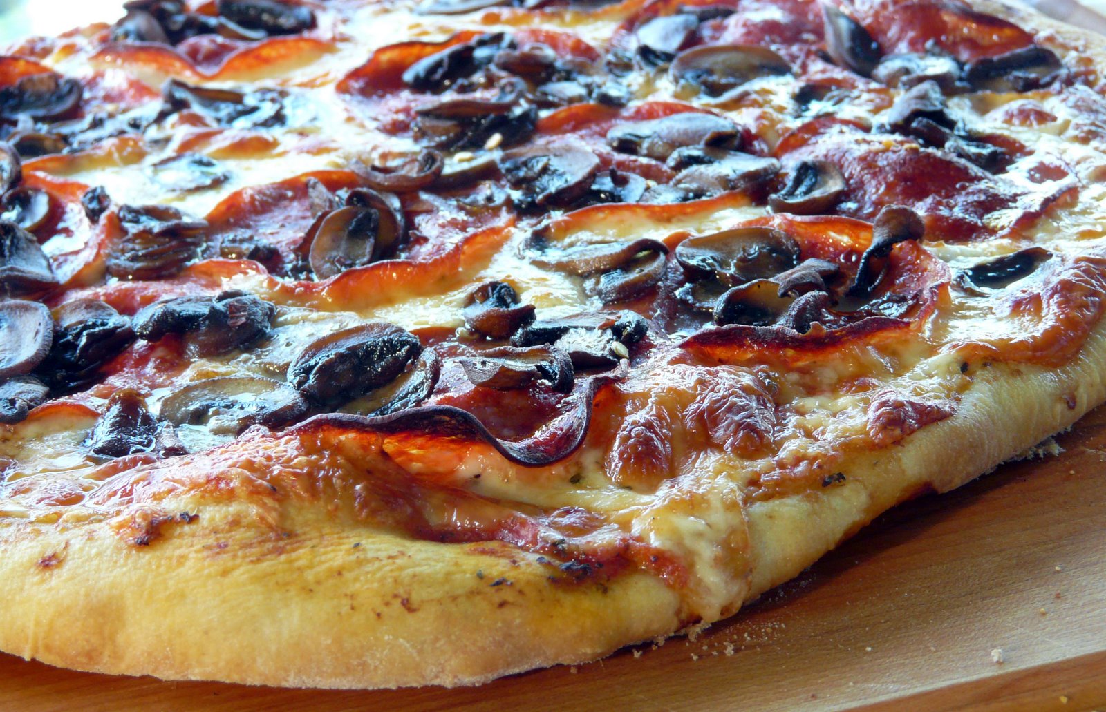 Made two pizzas one with just pepperoni and the other with pepperoni and mushrooms.