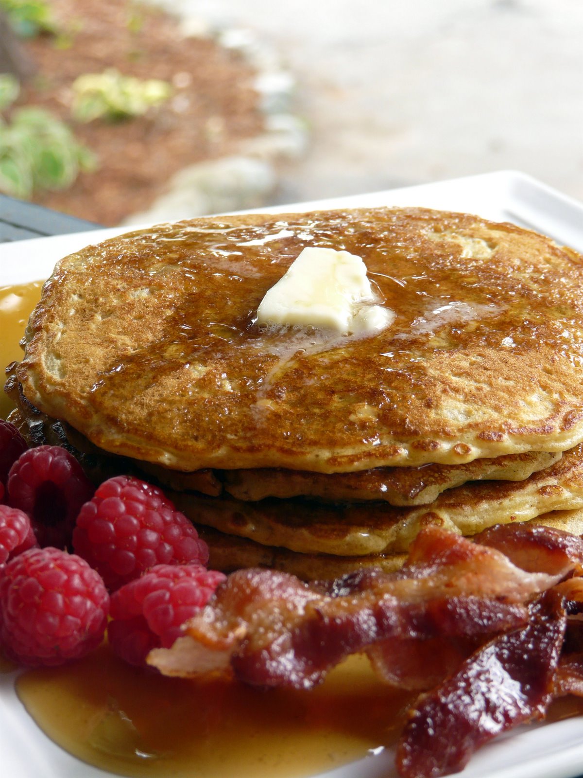 I found a recipe for Buttermilk Oatmeal Pancakes in Bon Appetit’s March 1991 issue.