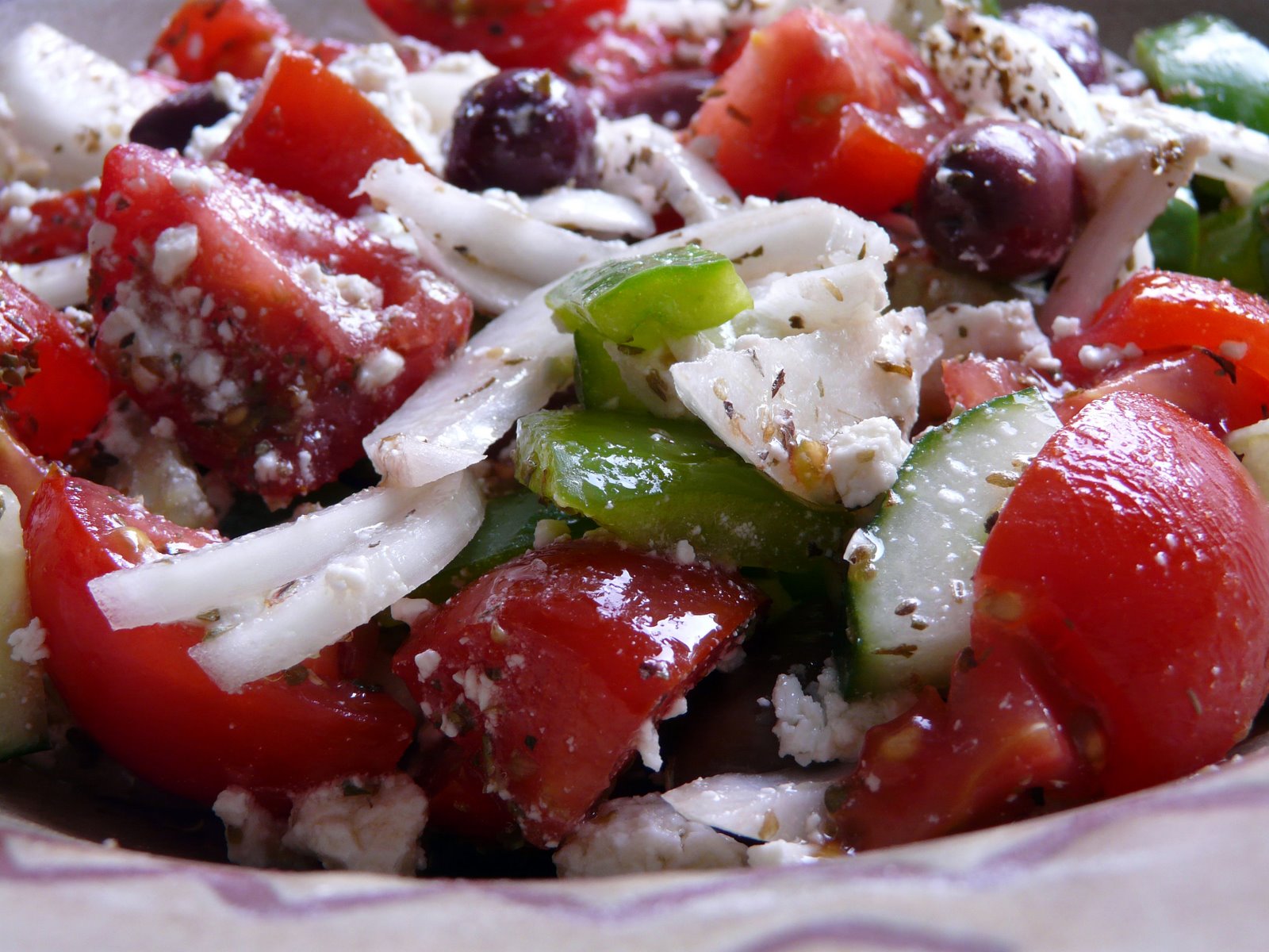 Gorgeous ribs, and that Greek salad is perfect. We'll have local tomatoes in another couple of weeks. Can't wait.