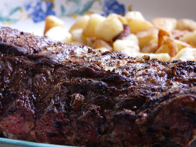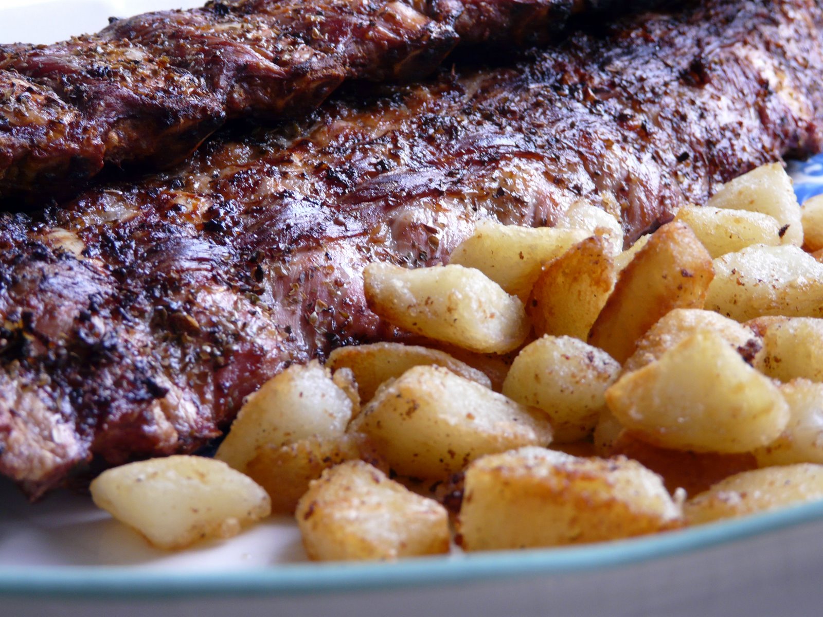 mmm, those ribs look great. I usually do mine for 4-6 hours in a really low oven basting with apple cider and finishing with bbq sauce.are those your lemon potatoes? god i love those, any chance you'd post your recipe for them? for some reason whenever i make them i'm about 50/50 for good lemony flavor.