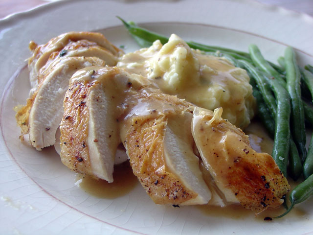 Some people just can’t make gravy. Or at least they believe they can’t make a good gravy. Gravy is actually very easy to make. All you need is some flavourful pan drippings, flour, salt, pepper and liquid. I prefer to make all my gravies using either chicken or beef broth. Never water. And I like to simmer fresh herbs to enhance the flavours. Sage or thyme is wonderful in chicken, pork and turkey gravy. Rosemary works well in beef or pork gravy.