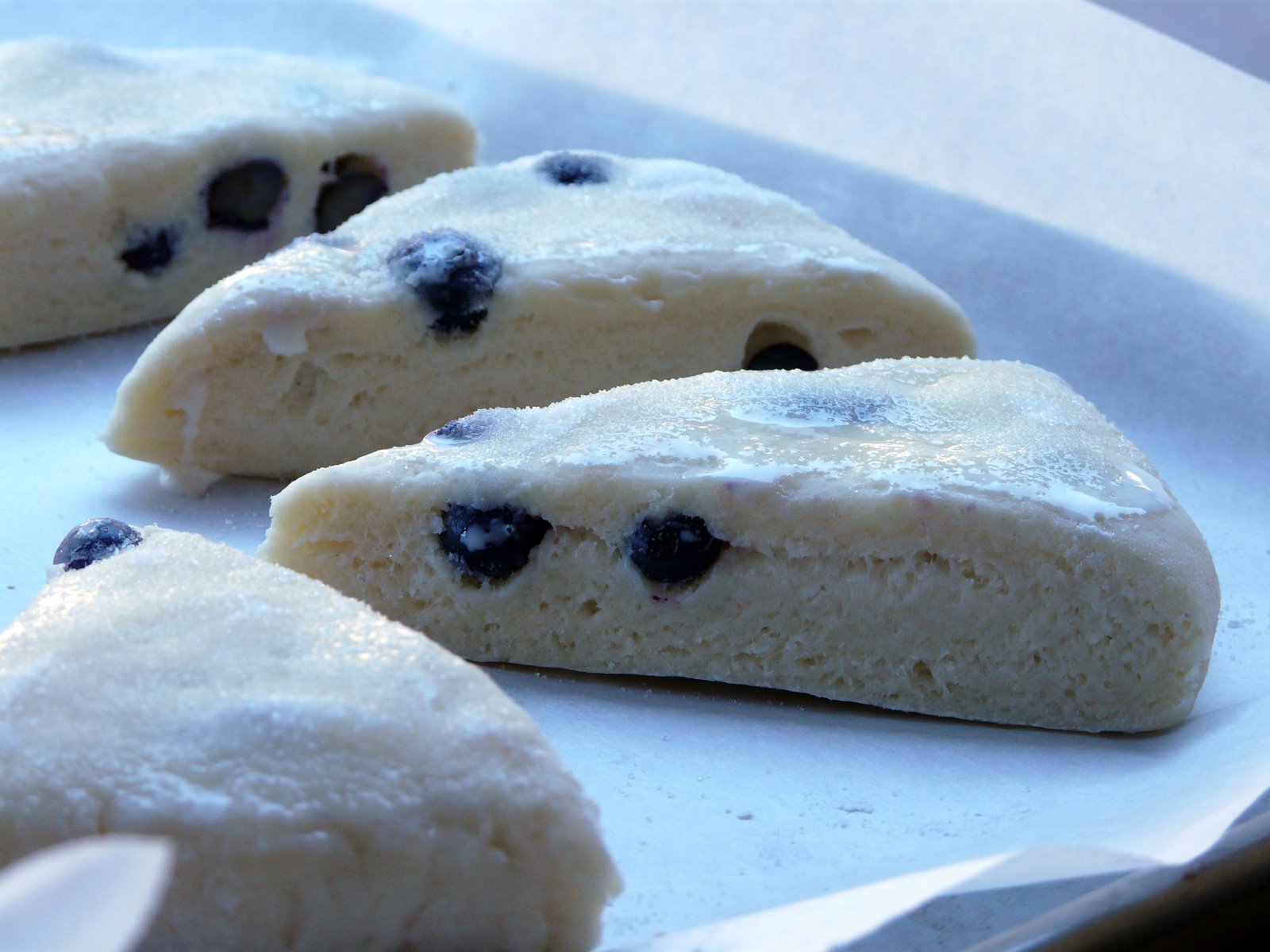 Still breaking in my new oven. This morning I baked scones. Gave Moe a choice of either Blueberry or Raspberry. So Blueberry it was. I used the last of the 5 pound box of local blueberries I bought earlier in the week.