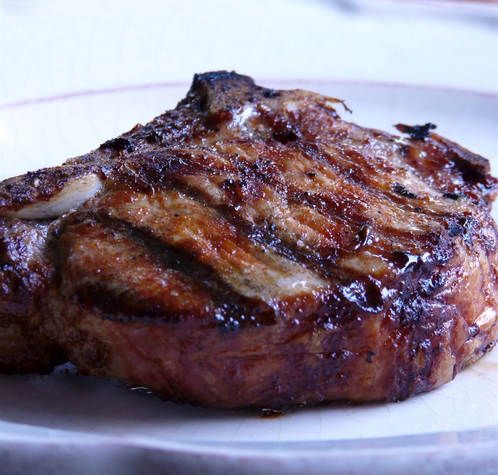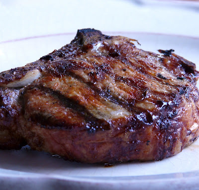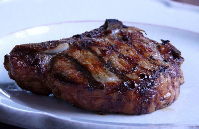 Nice thick pork chops rubbed with fresh garlic (Tip: Rub a peeled garlic clove on a microplane to make a paste), salt, pepper and a little cayenne pepper. My favourite kind of meal. One that I can have ready in less than an hour after getting home from work.