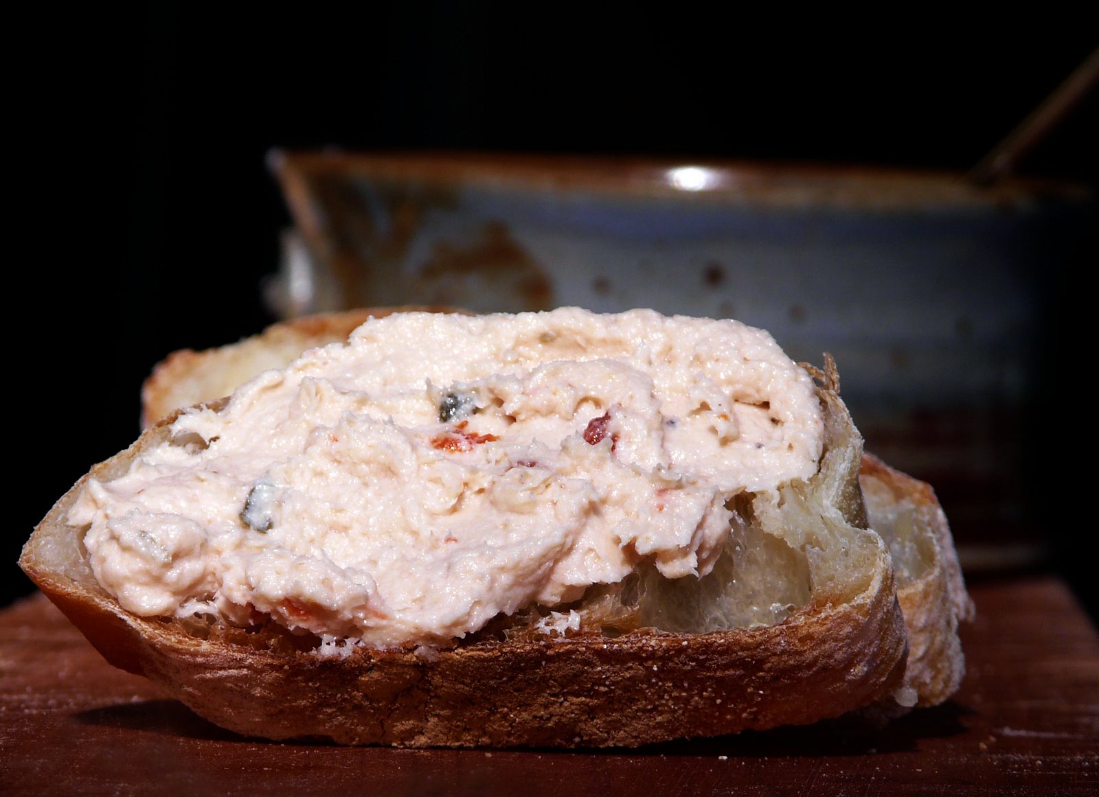 When ready to serve remove a bit early from fridge so that the pate has a chance to soften just slightly. Serve with toasted pita triangles. Cut Plain or whole wheat pitas into triangles. Separate each triangle and place on cookie sheet. Brush with melted butter or margarine. Bake at 350°F until crisp and golden. Be careful not to burn. Remove and let cool.