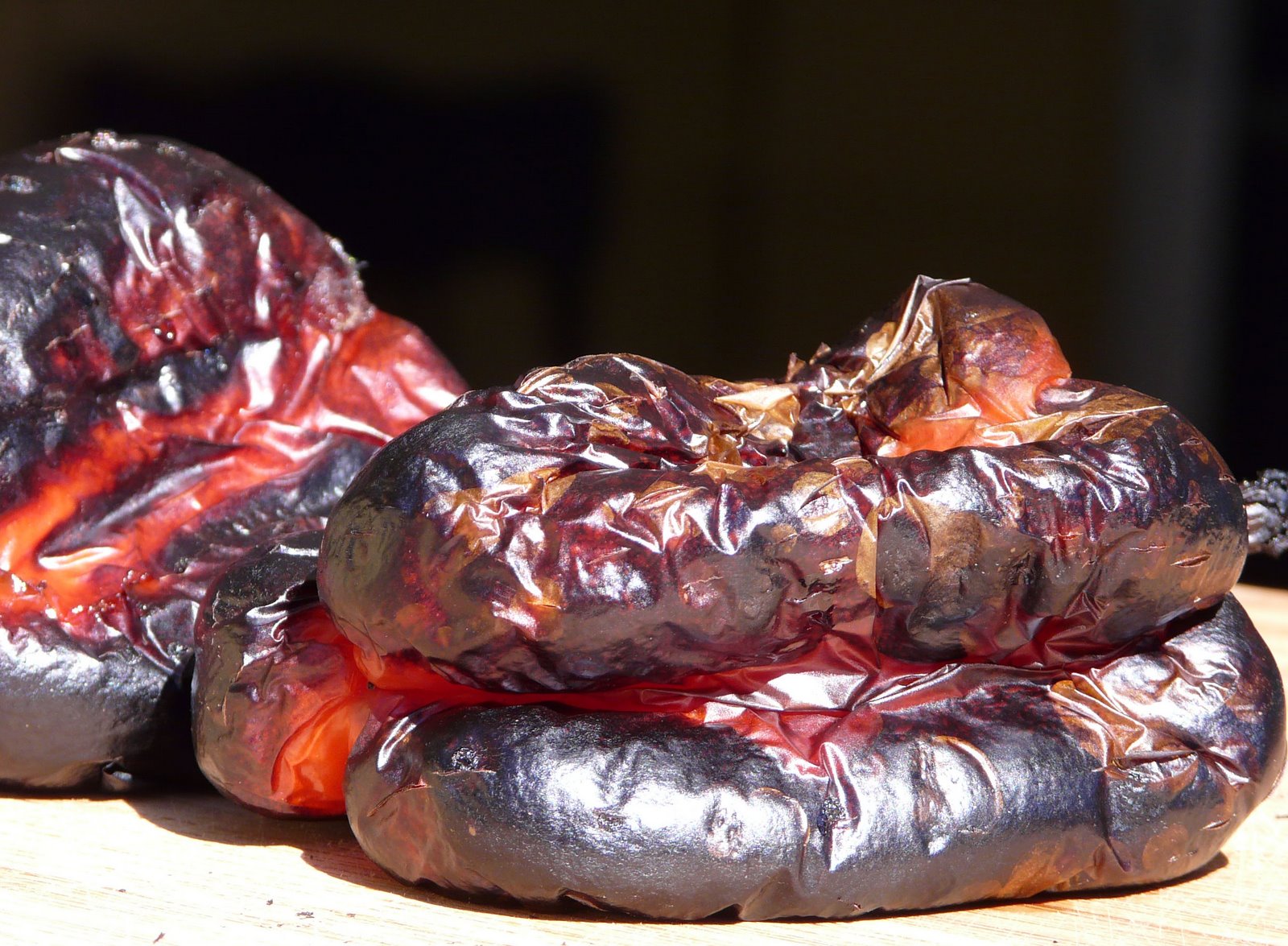 It is very easy to roast peppers. If you have a gas range you can place the peppers right on the burner. Or roast them on a hot grill, turning as they blacken or they can be roasted using the oven broiler. The broiler is my least favourite way. Once roasted place in a bag for 10 minutes allowing the peppers to steam in their own heat. This will make it easy to remove the skin.