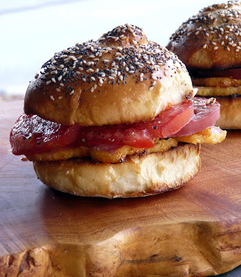 Bacon and tomatoes make the perfect sandwich, especially in a homemade bun. A yummy way to start the day.