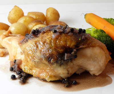 5.Bake for 30 or 40 minutes, basting occasionally, until the juices run clear.
