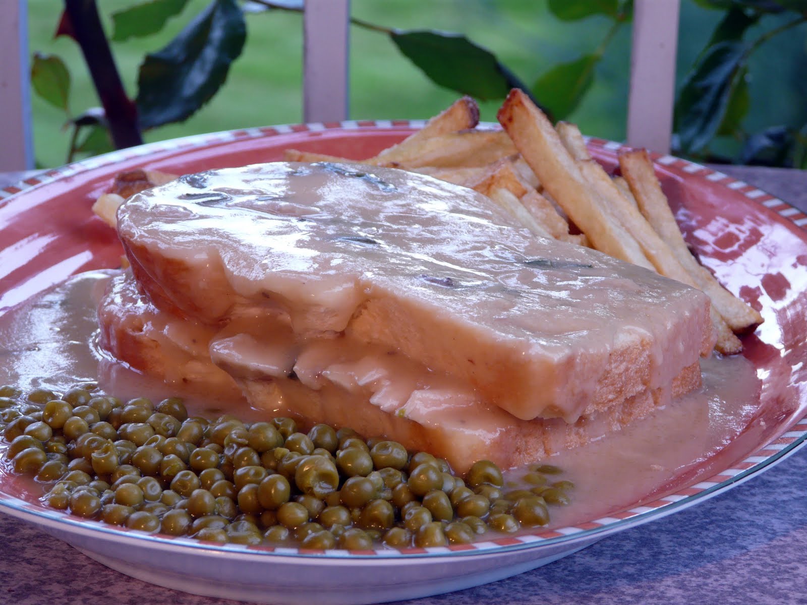Yumm, open faced hot chicken sandwich is just one of those foods that can whisk me back. We enjoy them here as well and it's always so well received.LOL about the canned peas. I hear you. Wouldn't be the same any other way!
