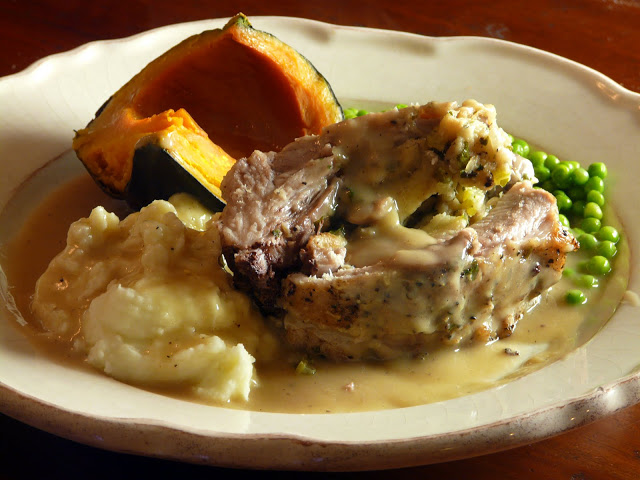 This is so good. The sage dressing both flavours and is flavoured by the pork. One of my favourite fall dinners.