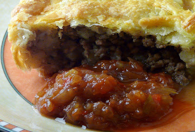 Yes! I make my own chili sauce to go with it. I have only made it with ground pork and seasonings but most recipies I see add potatoes to it. I would serve it with a salad. I make my own pastry with lard.💜