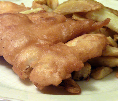 The Mill Bay Fish and Chip Restaurant makes a nice light crispy batter for their fish. And, their fries are hand cut. The batter is not at all doughy like some others, and the halibut is delicious and succulent with a meaty but large flakey texture. For me, no other fish comes close to Halibut.