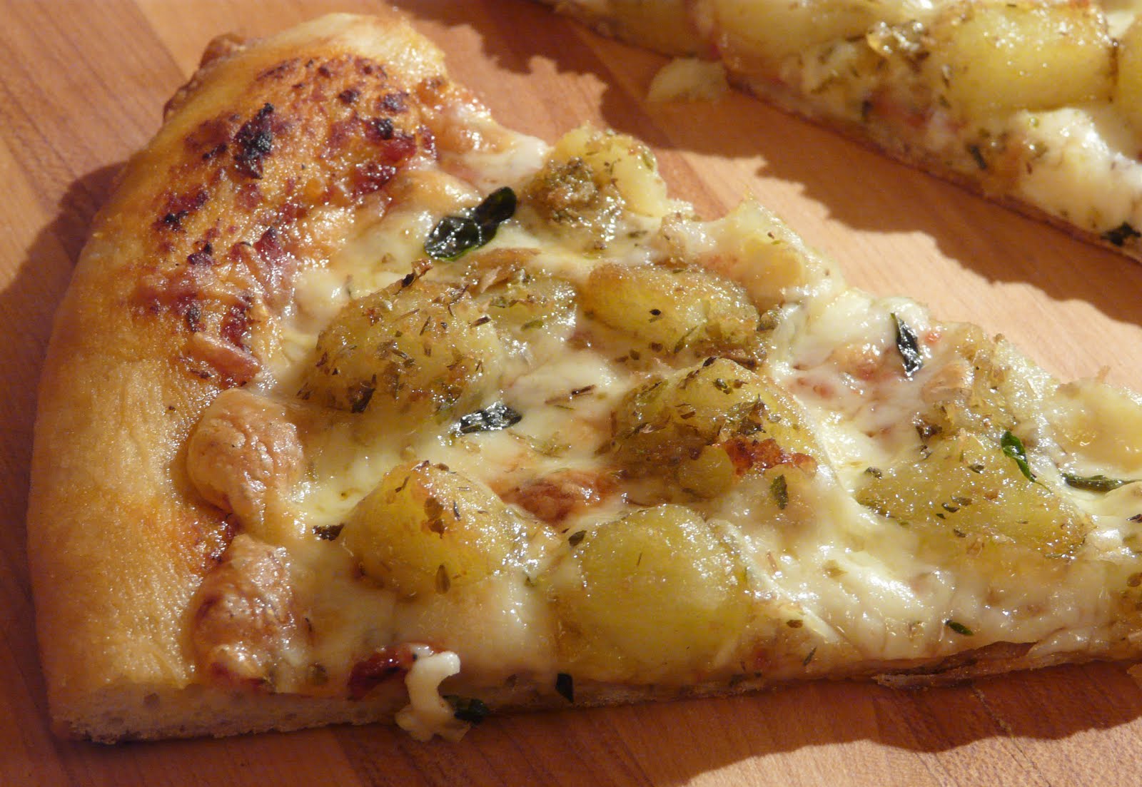 I had potato pizza at a restaurant once and hadn't tried it again until he made this for us the other week. I can see why he always requested it. Yum!
