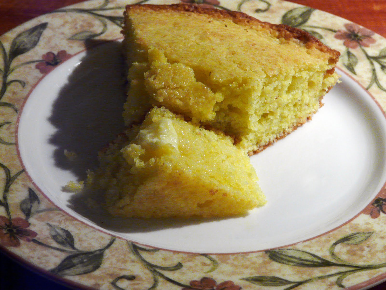 The recipe I found on the Besotted Gourmet was different in that it not only contained buttermilk but it also used olive oil in place of butter. The texture was moist and very similar to my favourite cornbread, but the flavour was definitely different. I must admit , that even though this version was good, I did find that the olive oil flavour was very pronounced and a little over powering and not at all what I was expecting. I would make this again, but next time I will use melted butter.