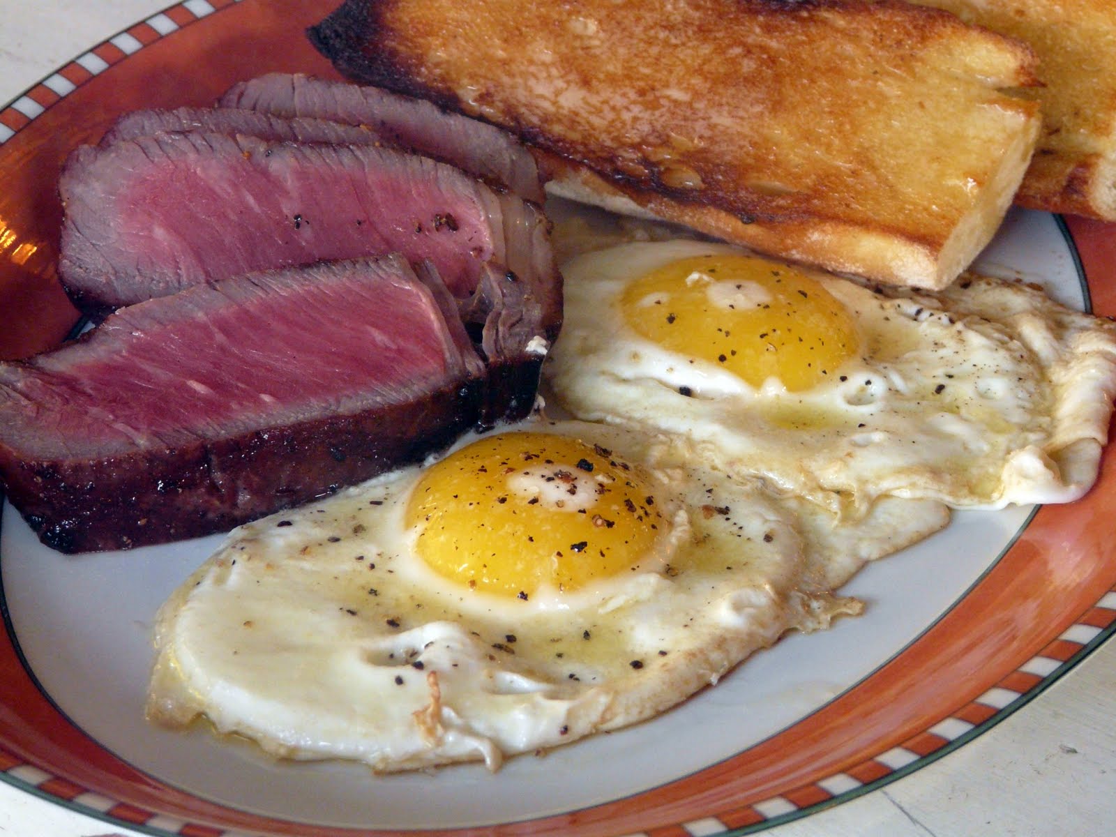 I presalted a nice thick Rib Eye steak on Tuesday with the intentions of grilling it for dinner Thursday or Friday. That didn’t happen. So I grilled it this morning for Moe’s breakfast.