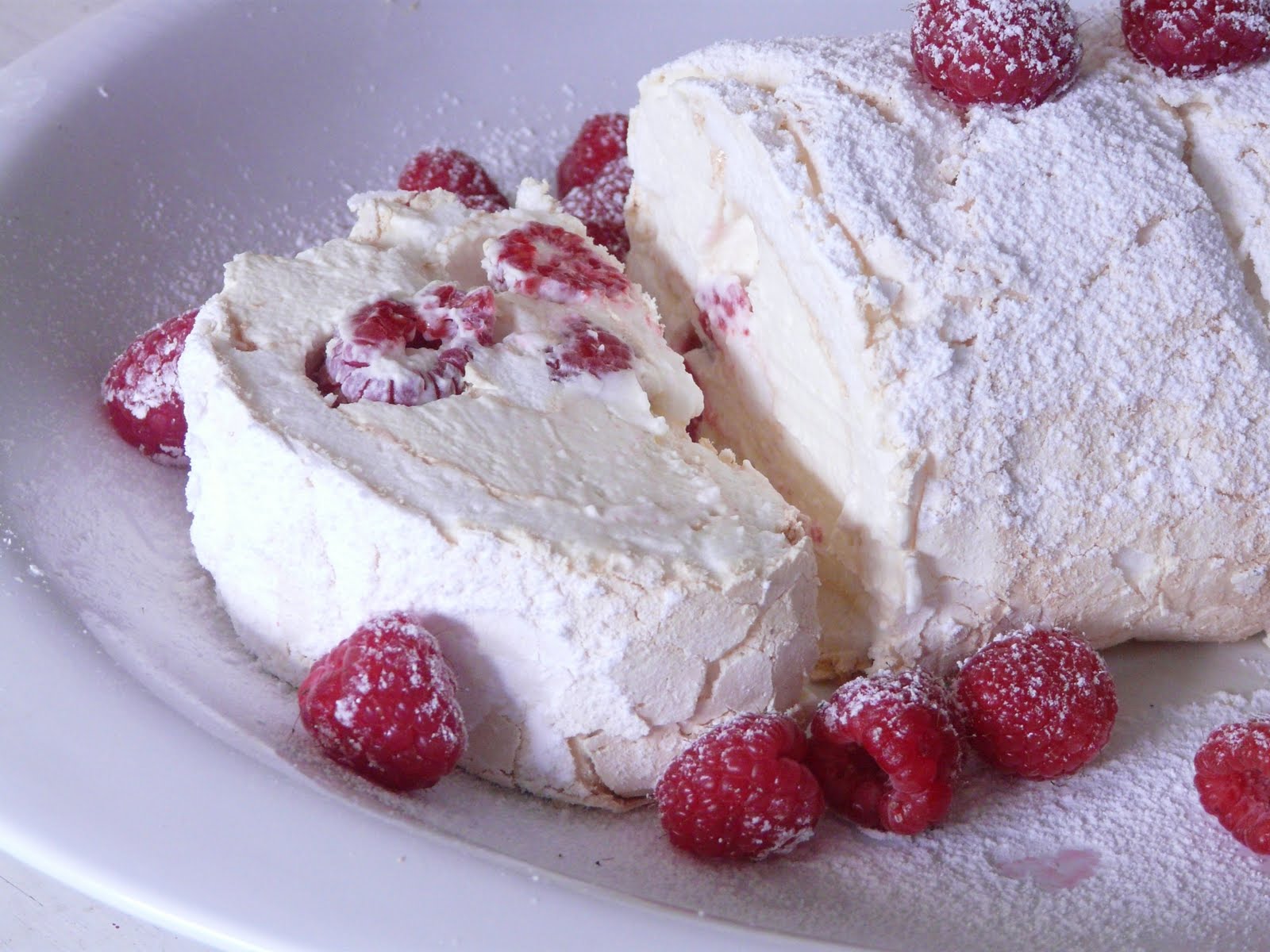 The grocery store had beautiful looking raspberries on for a good price today. I knew exactly what I was going to bake. A meringue. Soft, chewy, sweet meringue rolled around whipped cream and raspberries.
