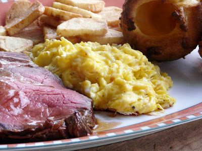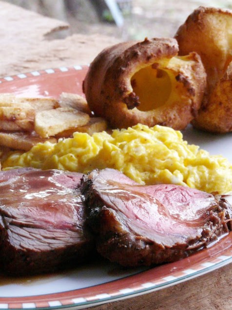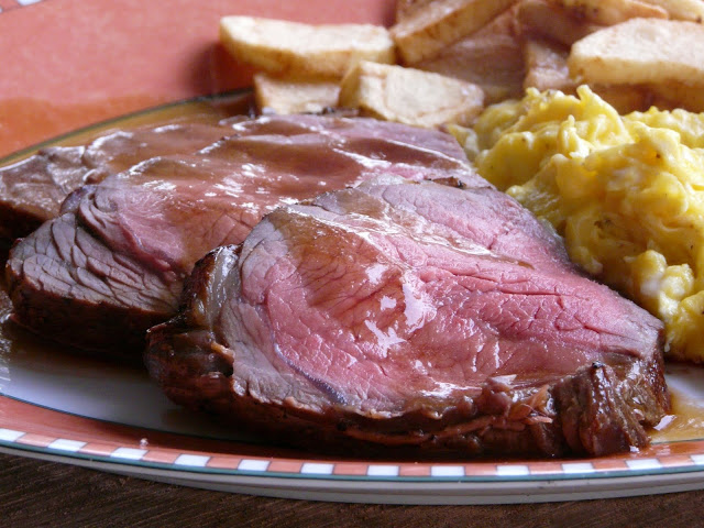 When we lived in northern Ontario we would often go out for a Sunday Breakfast brunch. There was always the standard breakfast items and usually a couple of meats at the carving station. Moe loved the combination of rare roast beef and gravy with his scrambled eggs.
