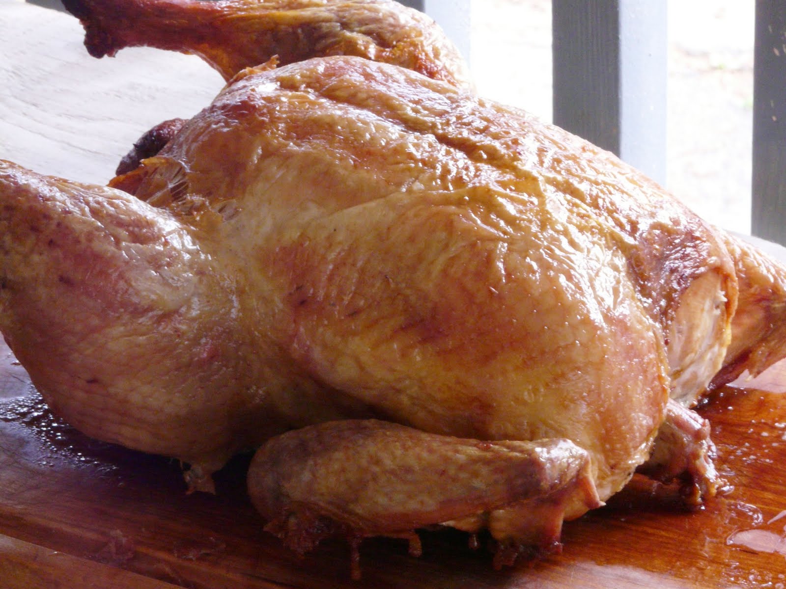 Wow! I don't think I've ever seen a chicken that size! And it looks just perfectly cooked.