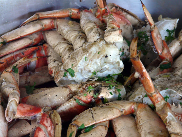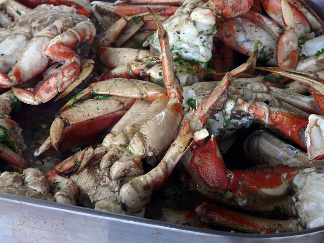 Dungeness crab should be alive when it goes into the boiling water; the crab has more flavor if you don’t clean it before you cook it.
