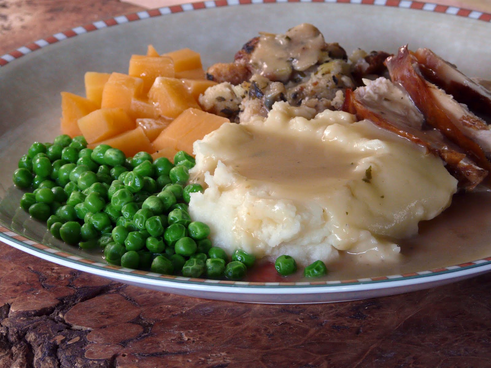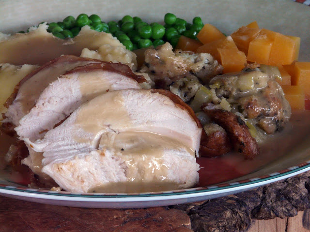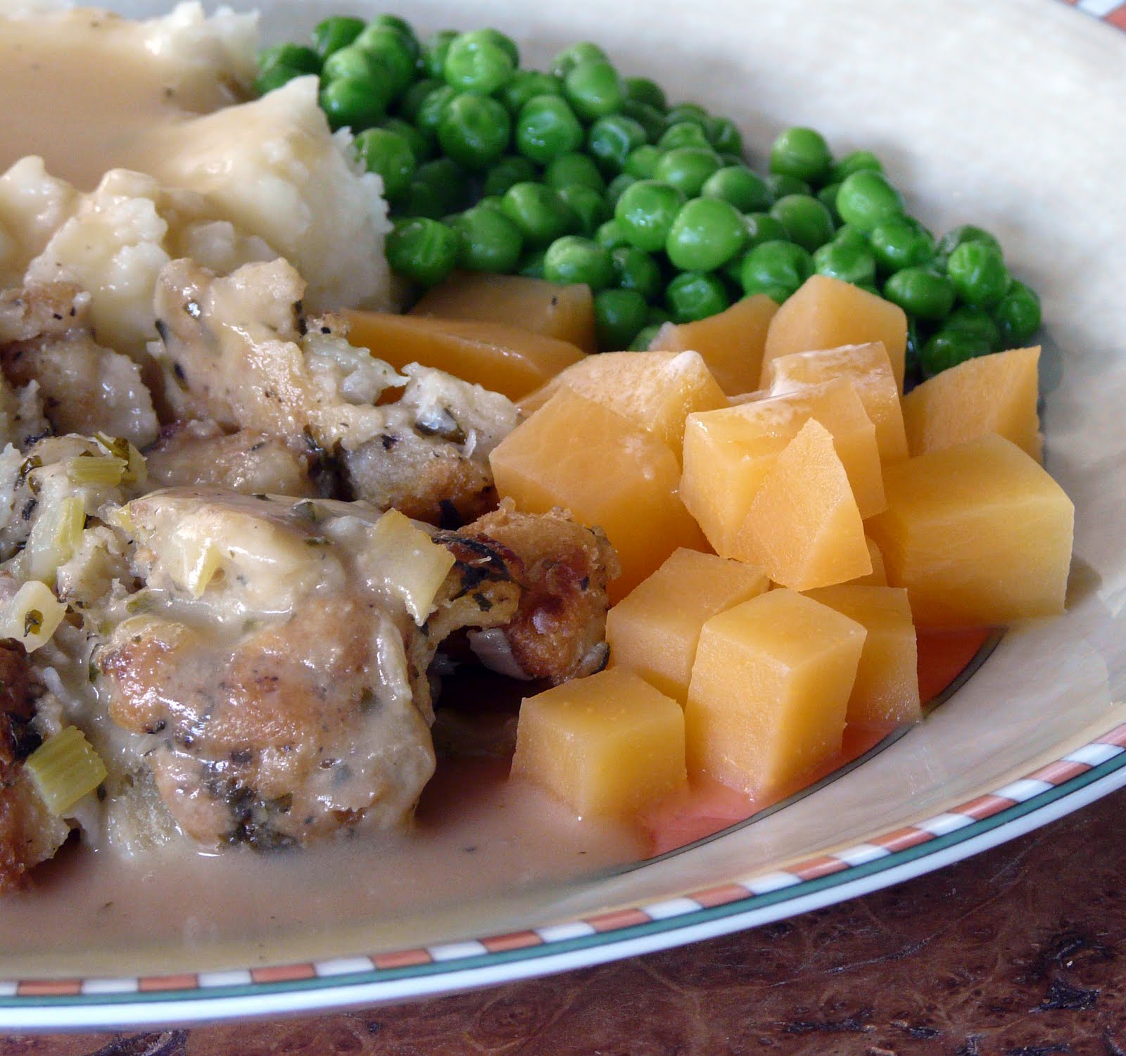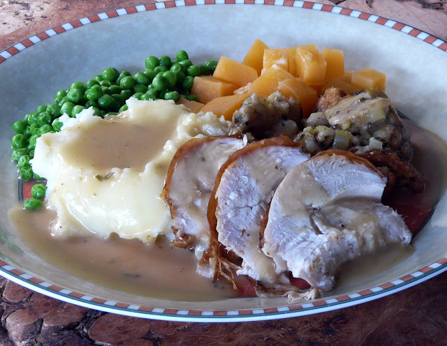 rutabaga, bread stuffing and lots of wonderful rich turkey gravy.