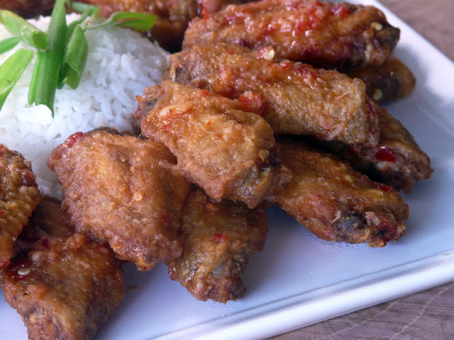 Double frying the wings makes for a wonderful crispy coating and retains some of the crispy texture even after tossing with the sauce.
