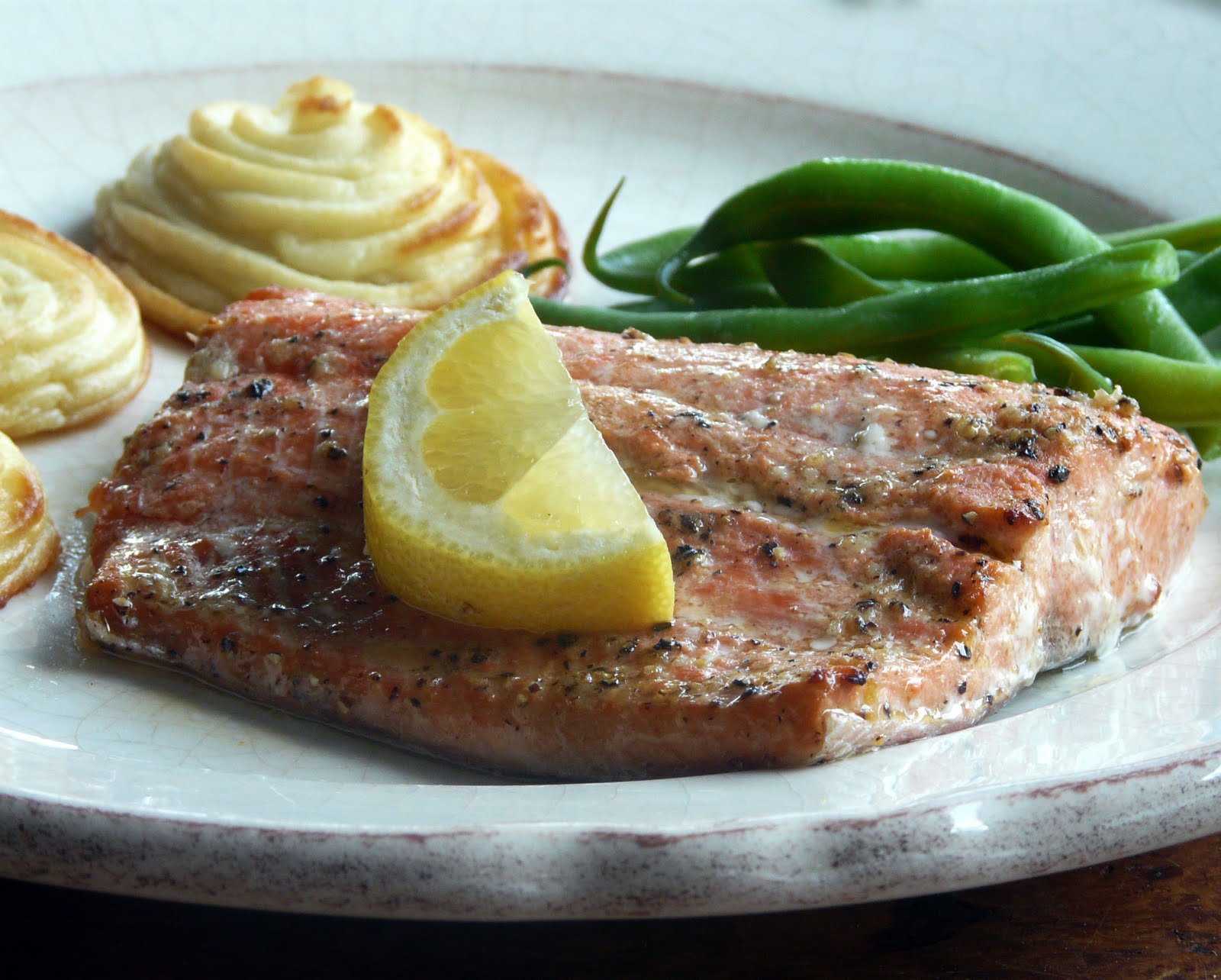 Lucky you to have a such a good friend! Your salmon just looks soooo good!! A friend of my son caught a striped bass last week and brought over the fillets. We grilled them, as well. It doesn't get much better than fresh caught grilled fish. And those potatoes look like little clouds 🙂