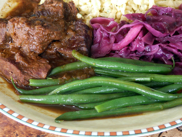 Thank you all. Yes, it was a little too warm for Goulash, but the heat didn't stop us from cleaning our plates. There was only a little meat and red cabbage leftover and I sent that home with the kids.Anonymous, thank you for sharing your version of Goulash. I'm sure it is delicious. There are many different versions, some more authentic than others. Ann