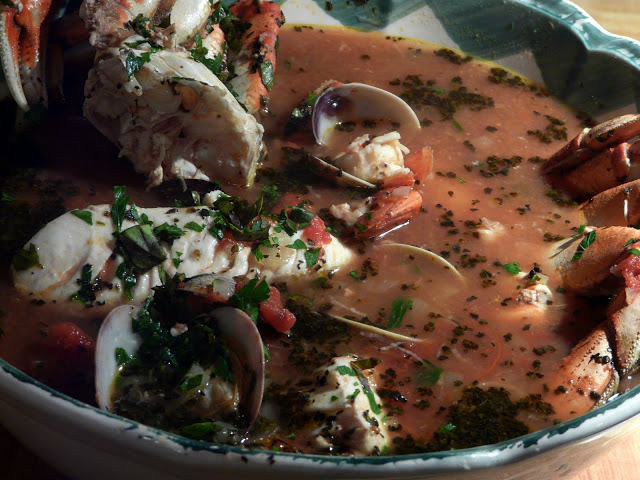 Had my first cioppino in San Francisco as well, at Chicago Joe's in the Castro neighborhood. It was love at first bite! Everytime I visit your site, I am envious of the fresh seafood to which you have access. Love halibut but the price here on the prairies is crazy, and somehow, no matter what I use it in, it always comes out drier than I expect. :_(