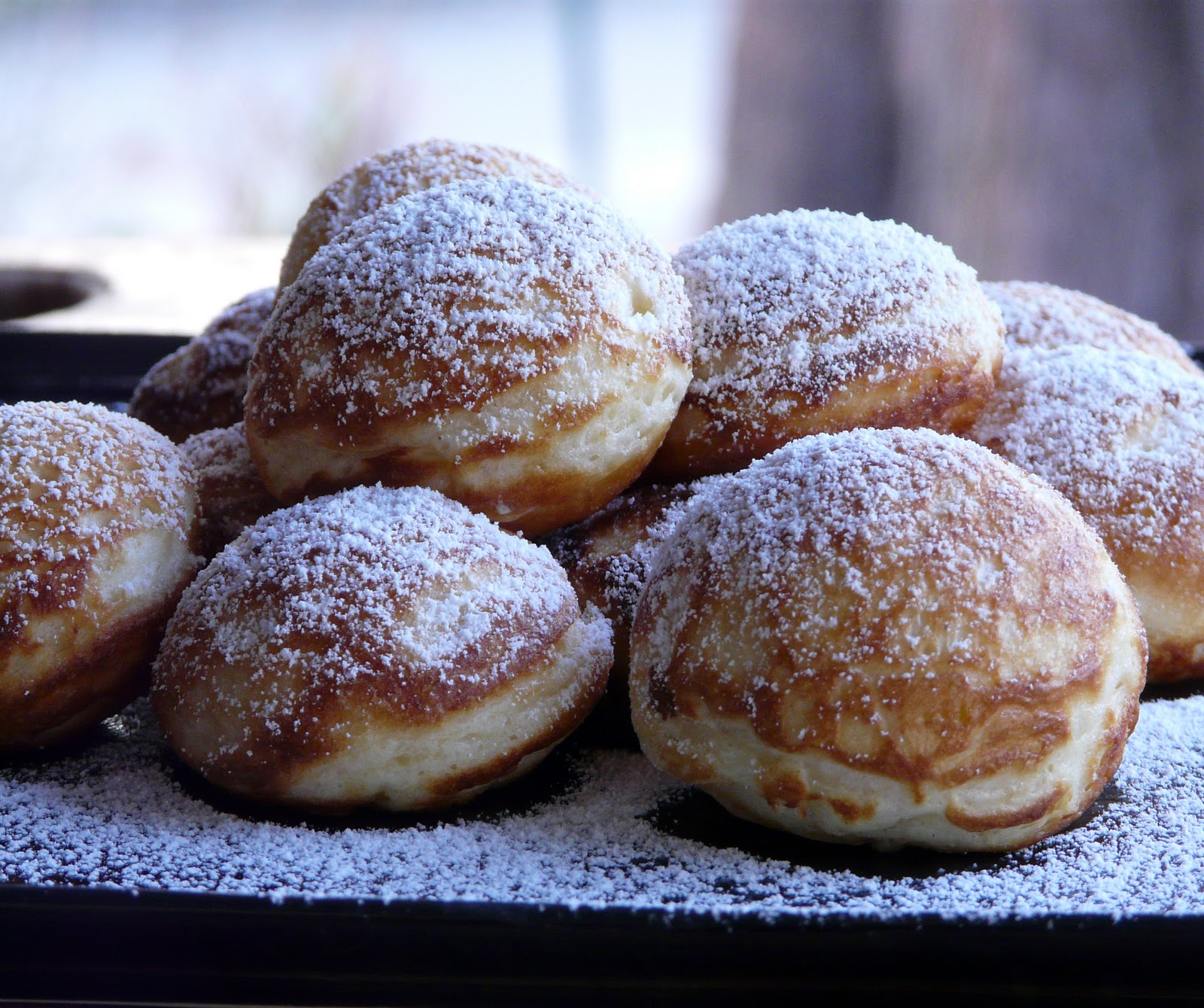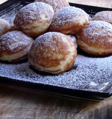 I am a missionary in Germany and we have something very similar in the bakeries here. They are called Pfannkuchen (pancakes), the are dipped in white sugar when they come out and then filled with a jam, usually plum. They are very delicious. I saw the picture and thought that was what it was, very close though!
