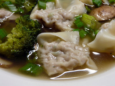 When I saw the picture of Wontons on the Eating Club Vancouver they reminded me of the spicy chili wontons served at the Shanghai Chinese Bistro. I decided to surprise Moe with a Wonton dinner. First course – Wonton Soup