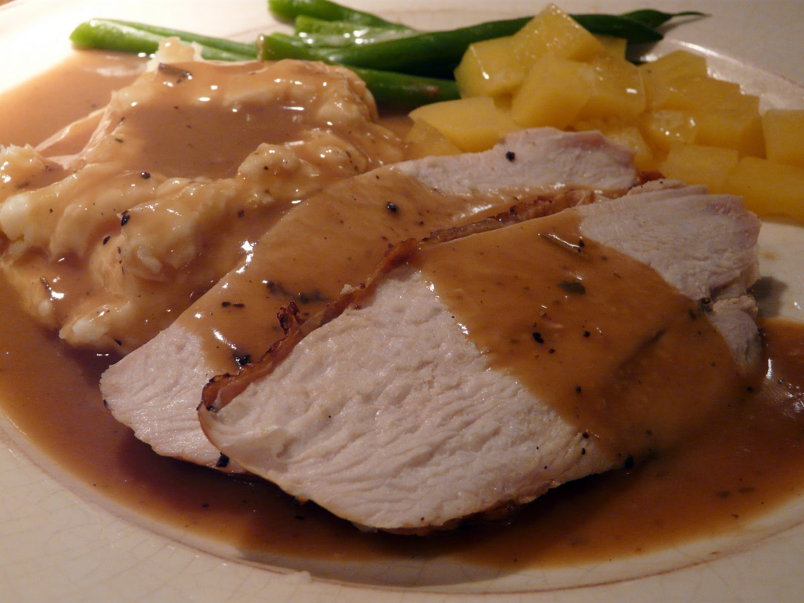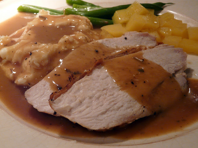 Nothing fancy. Just roast turkey breast, mashed potatoes and gravy, rutabaga and green beans. Not fancy but sure tasted good.